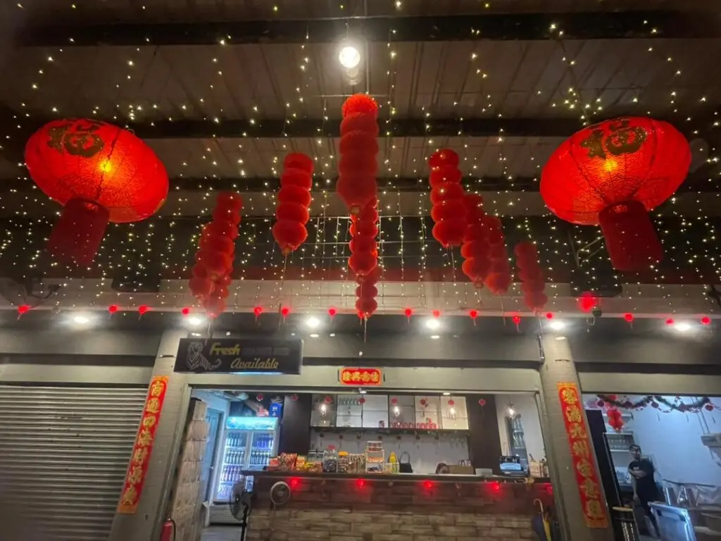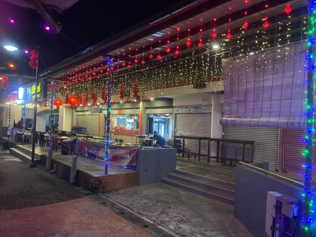 The CNY setup gives the street a lively yet comfortable feel — festive without being overwhelming.