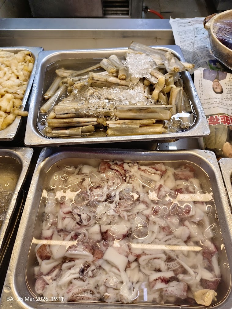 Walk in and you’ll immediately notice rows of fresh ingredients laid out on ice — seafood, vegetables, and all sorts of cuts you don’t usually see in tourist-friendly menus.